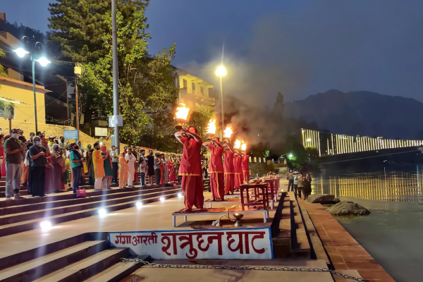 Witness the enchanting Ganga Aarti at Shatrughna Ghat, a spiritual spectacle where priests perform rituals with oil lamps, chanting mantras, and the sound of conches reverberates. Experience the divine ambiance as you immerse yourself in this sacred ceremony.